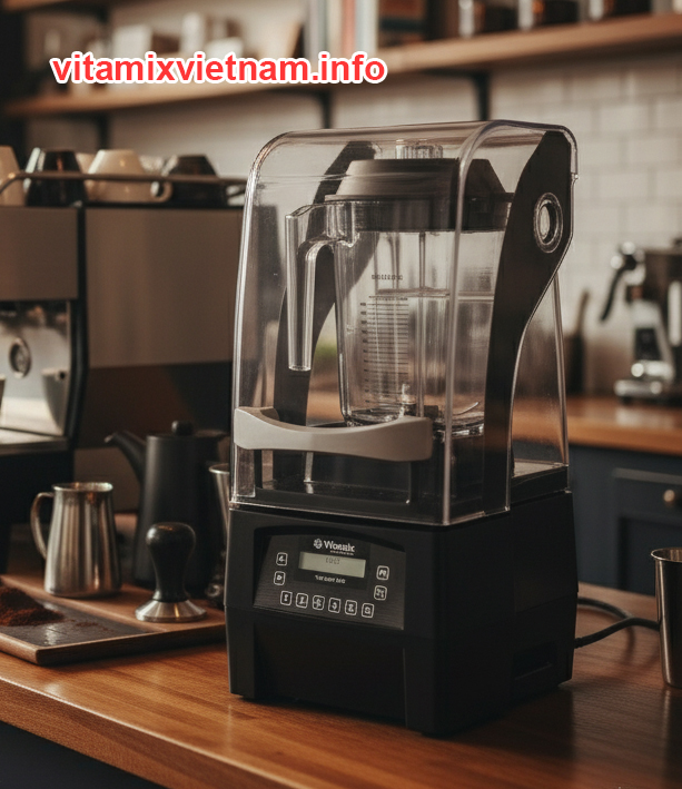 Model The Quiet One (phiên bản cách âm cao cấp nhất của Vitamix) Tiếng ồn chỉ ~64 dB – yên tĩnh nhất trong các máy xay công suất lớn, khách ngồi quán không bị ồn